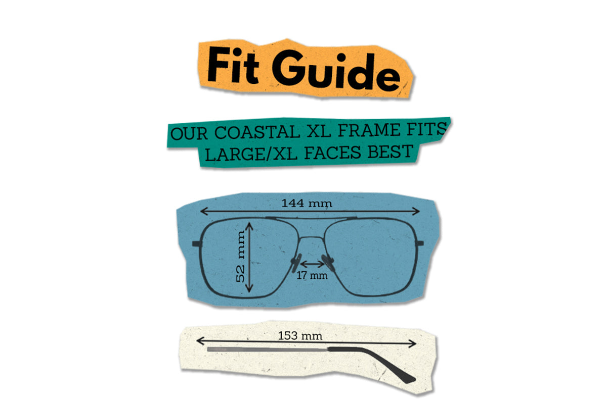 Coastal XL is built for bigger heads that make most sunglasses look too small. Our XL line of sunglasses typically fit like a glove for anyone that has had trouble finding shades that look proportionate and feel right from the start. Coastal XL is part of our staple XL line of sunglasses so if sunglasses normally feel tight or don’t cover all of your eye region, and you’re looking for an aviator style this is the best XL aviator you will find on the market!